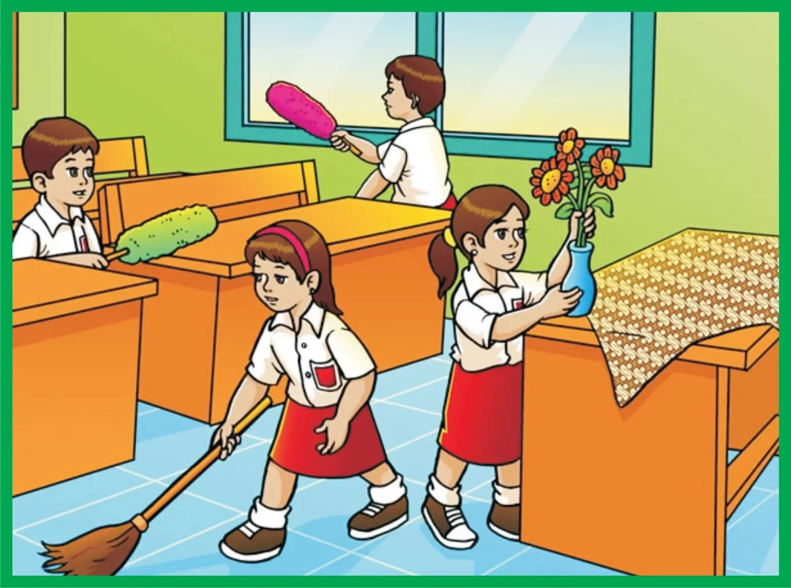Praktik sederhana ini sangat berpengaruh terhadap lingkungan belajar yang nyaman dan terawat.
